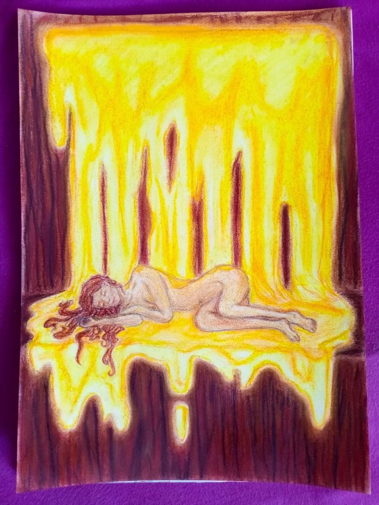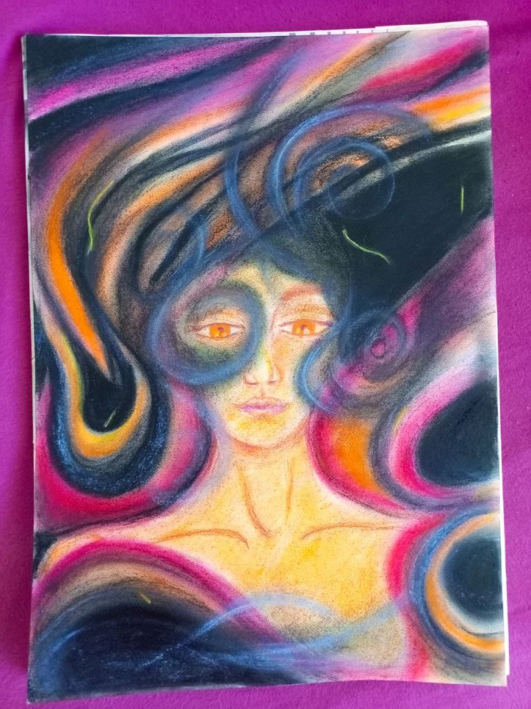 Я Евгения Рунг, также иногда подписываюсь Azure. Художник, телесный практик, танцор, разработчик, актриса импровизации. Мои картины — это погружение во внутренние миры, свои и зрителя. Сны ощущения, метафоры. Это встречи душ, и проживание телесных опытов, и опытов жизни в нашем мире, но внутри себя. Прикосновения, пение, созерцание, и процессы трансформаций.