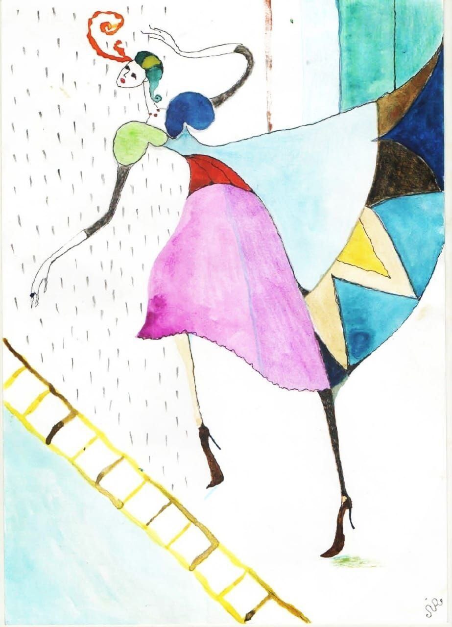 Пошла в школу учить французский язык, (при попытке поступить в Сорбонну недобрала несколько баллов).