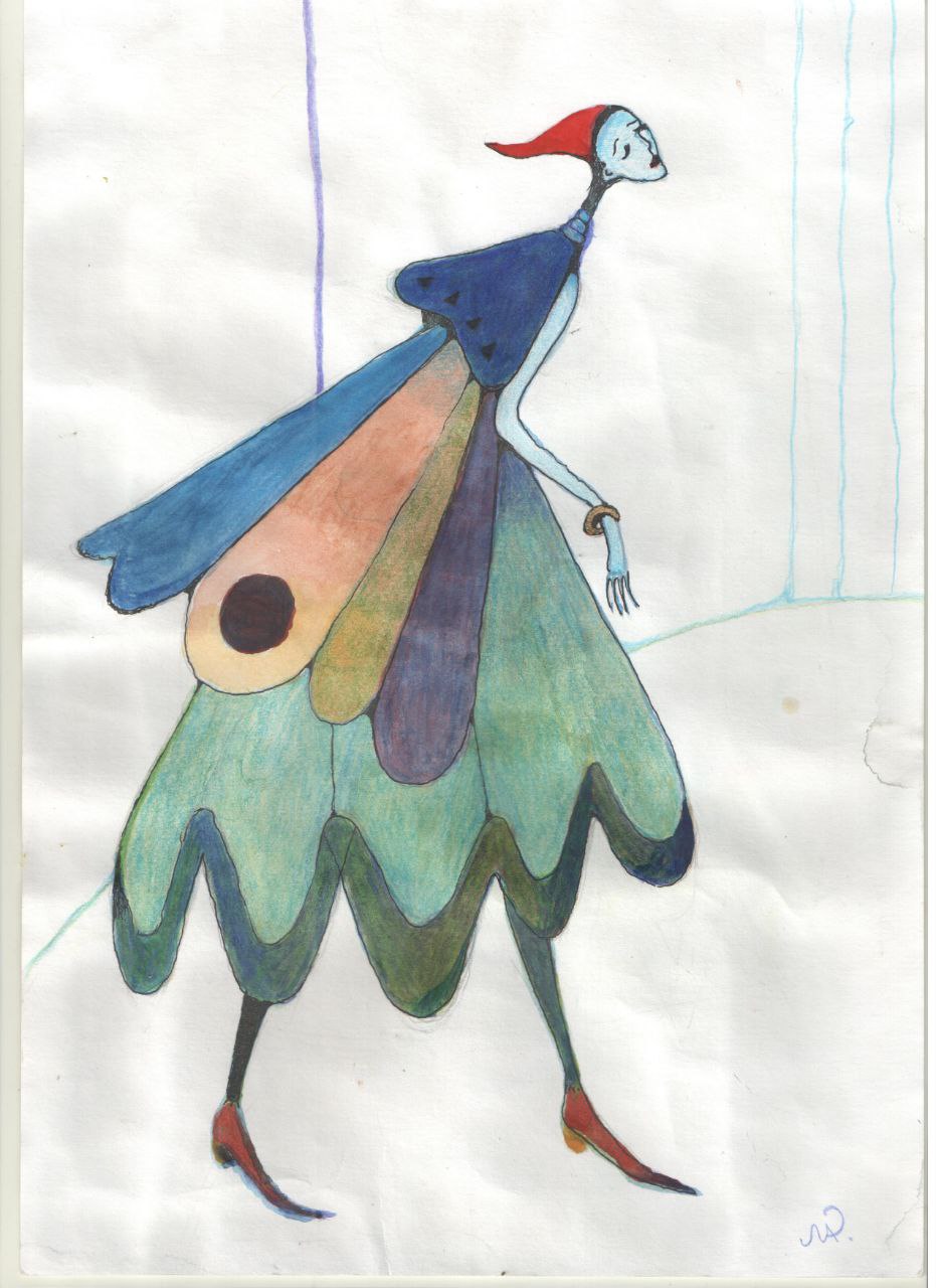 В 17 лет на улице остановили, и предложили стать моделью. Началась работа на выставках, показах… В это время поступила в МГУС на художественный факультет, там изучала рисунок, живопись, и историю костюма.